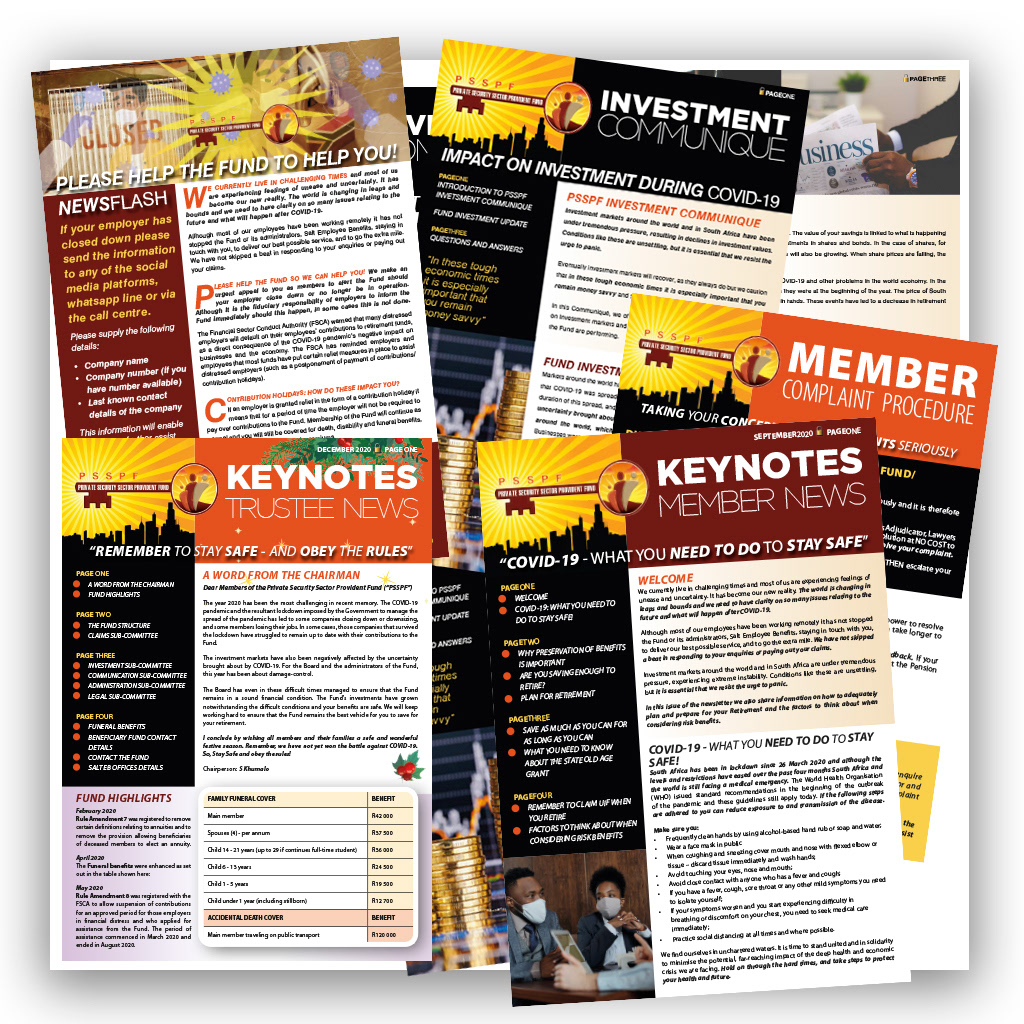 Newsletters and posters for Mineworkers Provident Fund are supplied in 5 languages - English, Sesotho, Tsonga, Xhosa and Zulu
